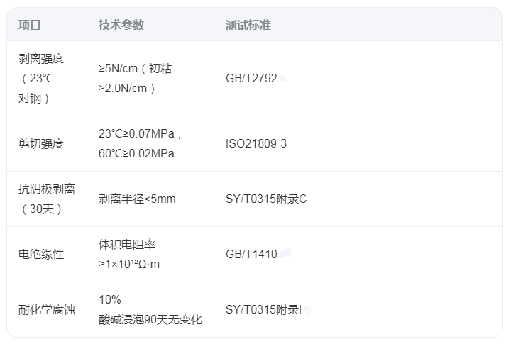 粘彈體防腐膠帶的關(guān)鍵性能指標(biāo)可分為基礎(chǔ)物性、防腐效能及施工適配性三大類,具體如下: