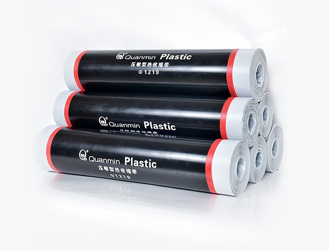 壓敏膠型熱收縮帶,又名:熱烤壓敏帶,是一種是將丁基橡膠改性聚異丁烯壓敏膠粘劑涂敷在輻射交聯(lián)聚乙烯基材上制成的熱縮自粘防腐蝕保護(hù)材料。
